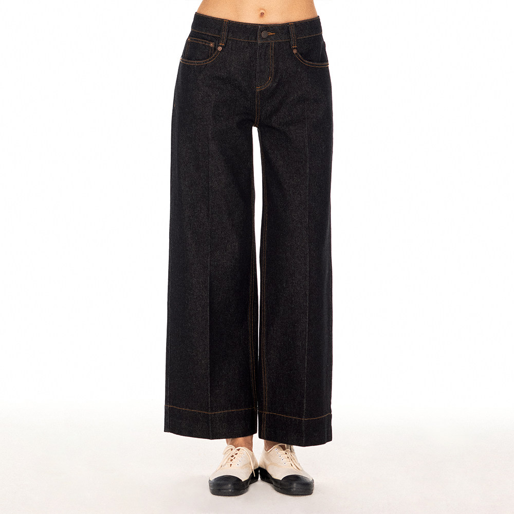MADE NOTHING MR100 black classic high stretch mid-rise flared floor-length jeans for women