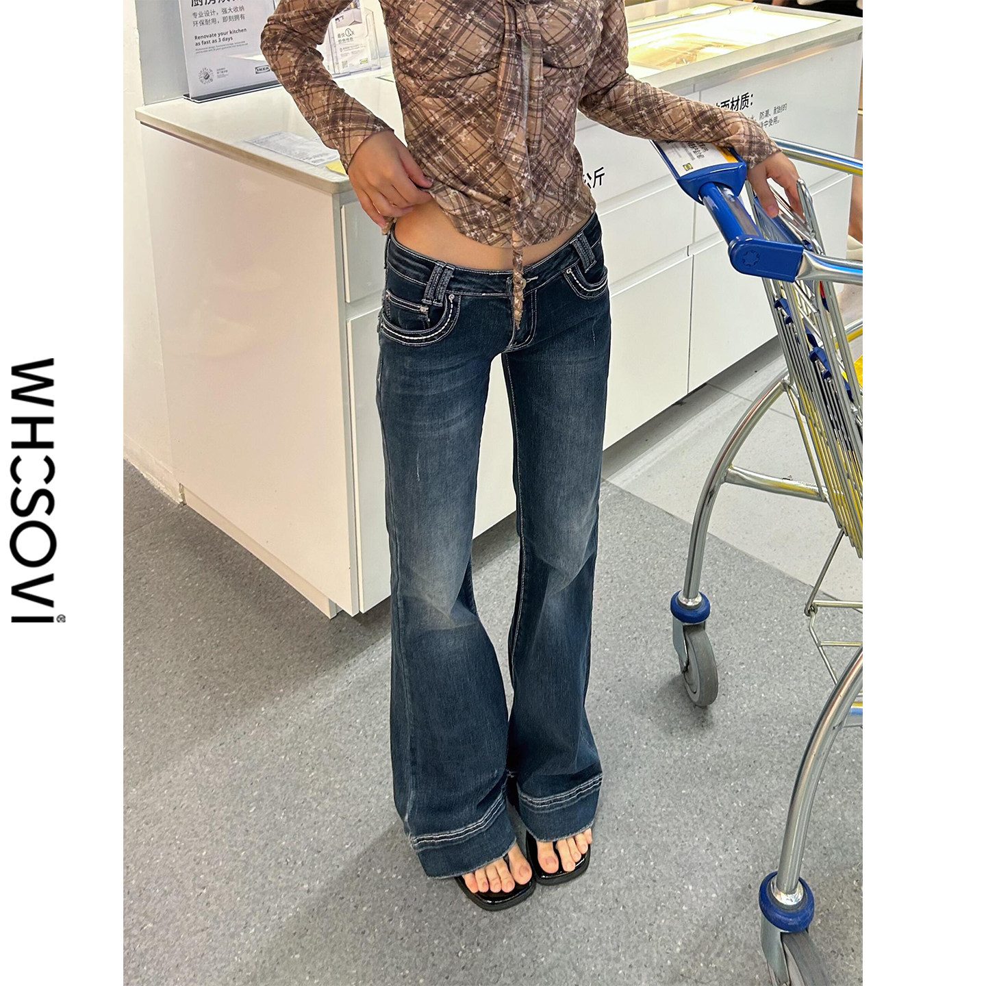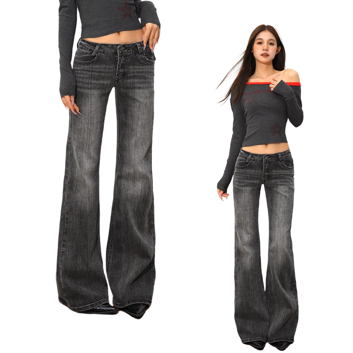 @SOHOT spring and autumn American retro washed distressed jeans women's bootcut wide-leg floor-length pants hot girl low-rise pants