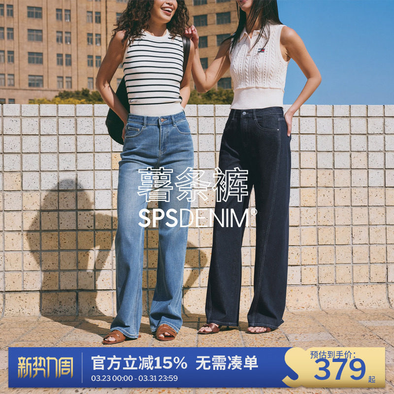【French Fries Pants Collection】simplepieces spring new SPS jeans women's four-sided stretch loose straight-leg pants