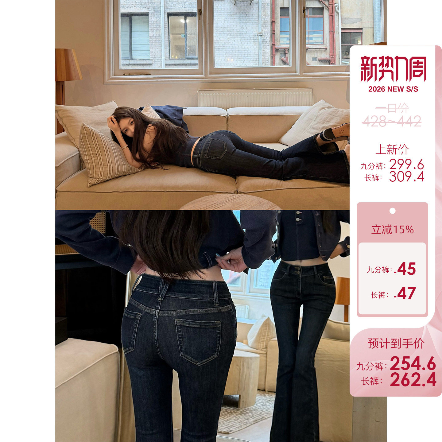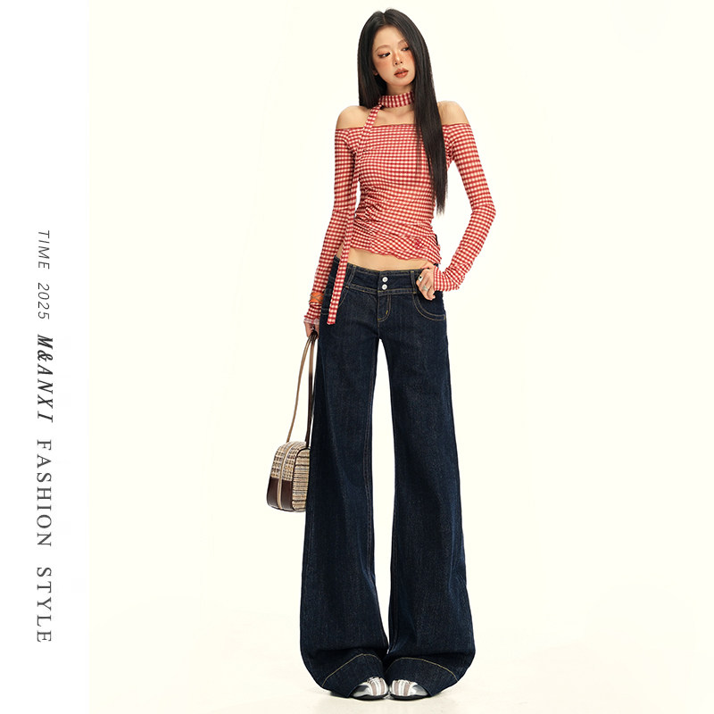 American dark blue straight-leg jeans women's spring 2026 new low-rise versatile slimming flared casual pants
