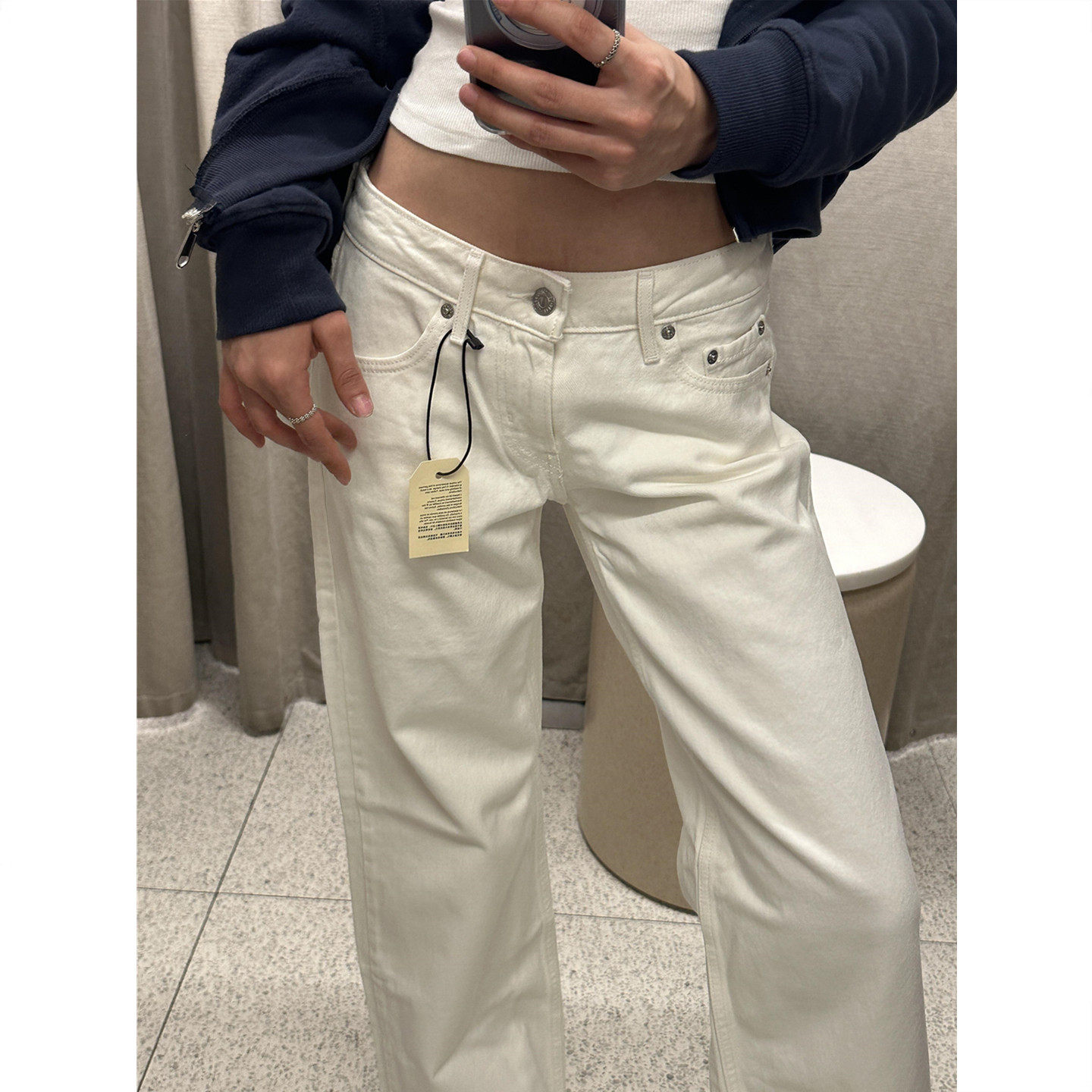 American vintage high street white straight low-rise jeans women's spring and autumn tall elongated hot girl wide-leg pants