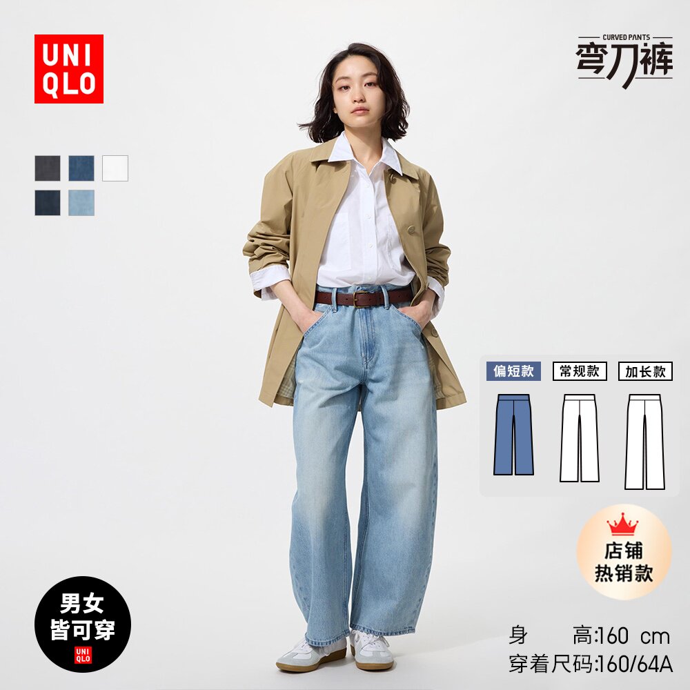 Short Uniqlo women's men's loose silhouette jeans/scimitar sickle pants 484808