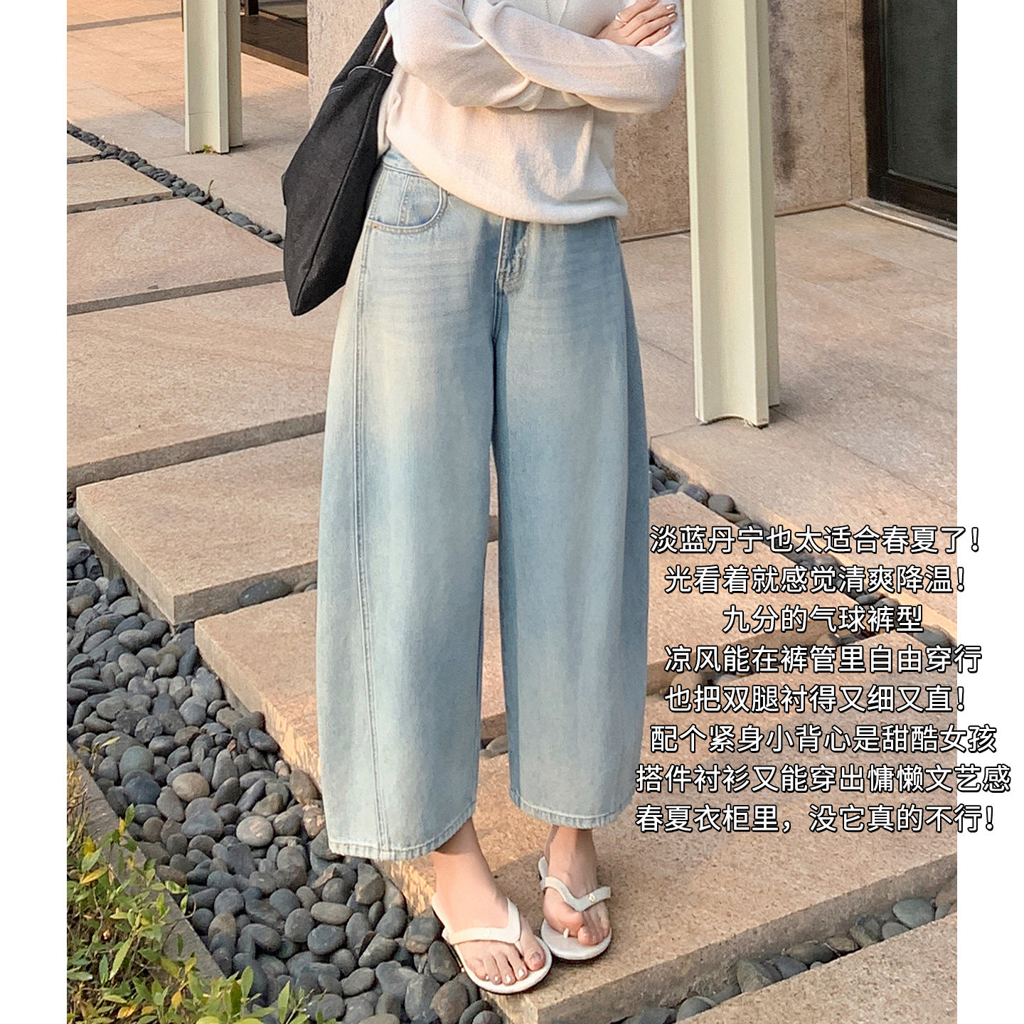 Meiyang Salt Bubble Jeans Denim Washed White Cropped Balloon Pants [Small 70] - Wednesday