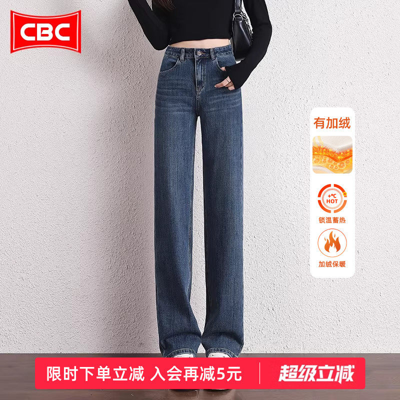 CBC Retro Blue Narrow Wide-Leg Jeans Women's 2026 New Winter Thickened Fleece Pants Small Straight Pants