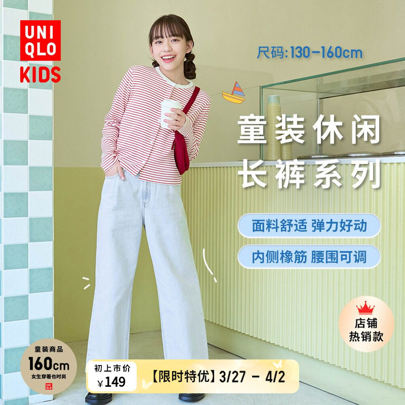 Uniqlo children's clothing boys and girls loose straight denim trousers washed products wide-leg 483503 478128