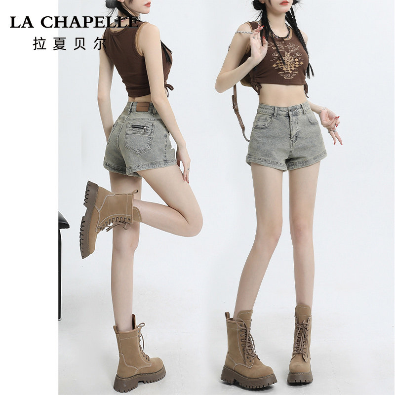 La Chapelle American Spice Girl Denim Shorts Women's Summer 2026 New Petite High-Waisted A-Line Ultra-Short Hot Pants