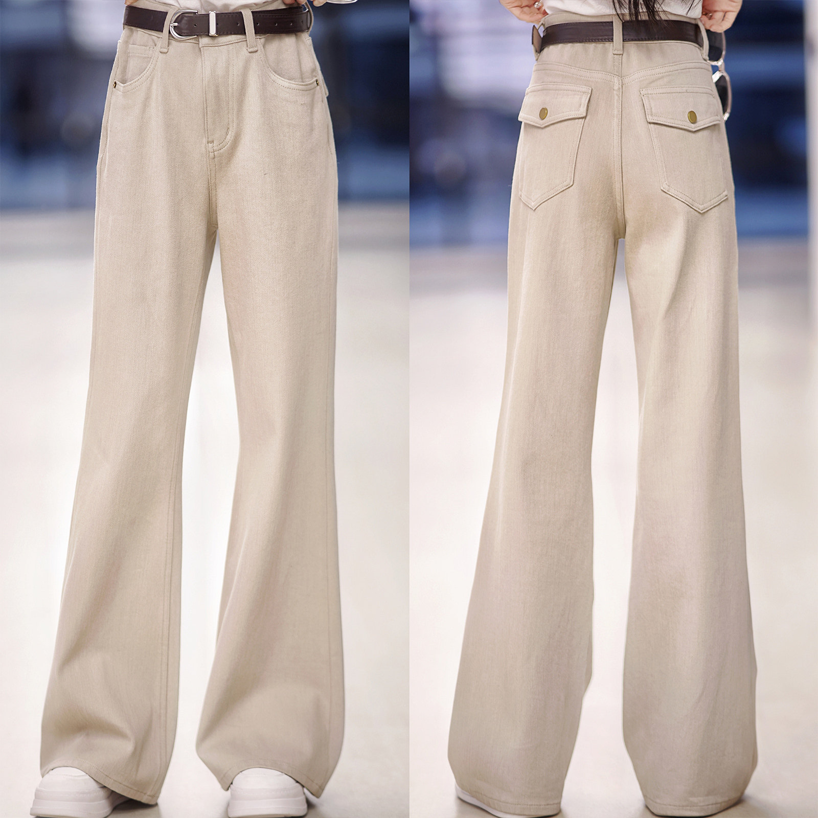 pusumede's own money! White wide-leg jeans, women's high waist, loose and slim, casual and versatile straight-leg trousers
