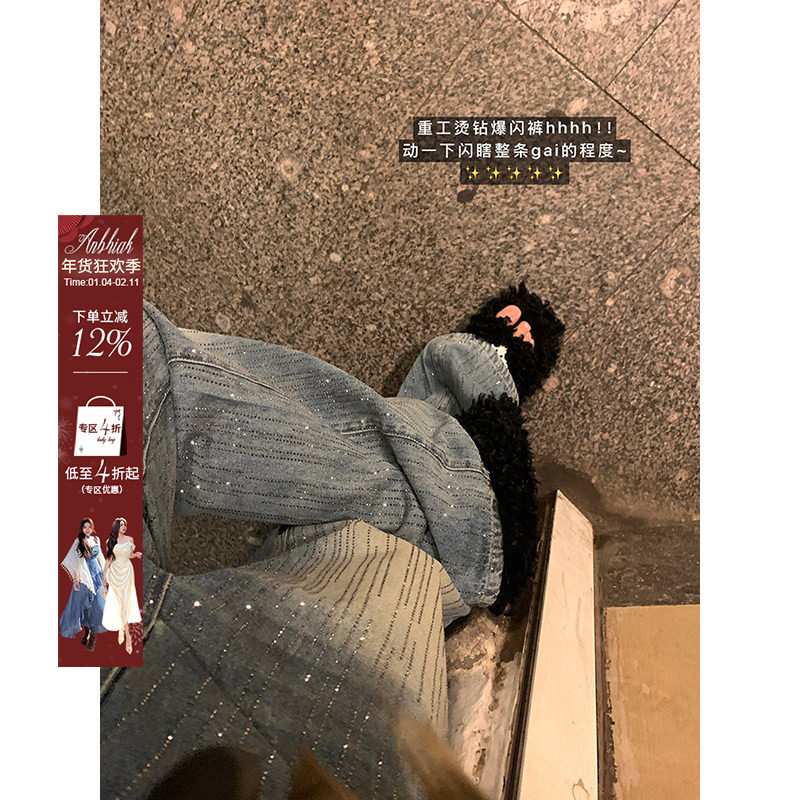 Anne is not hot, Van Gogh, stars and moon cover the crotch, show off the legs, long and wide-leg jeans, women are chubby, plus-size heavy industry hot diamond jeans