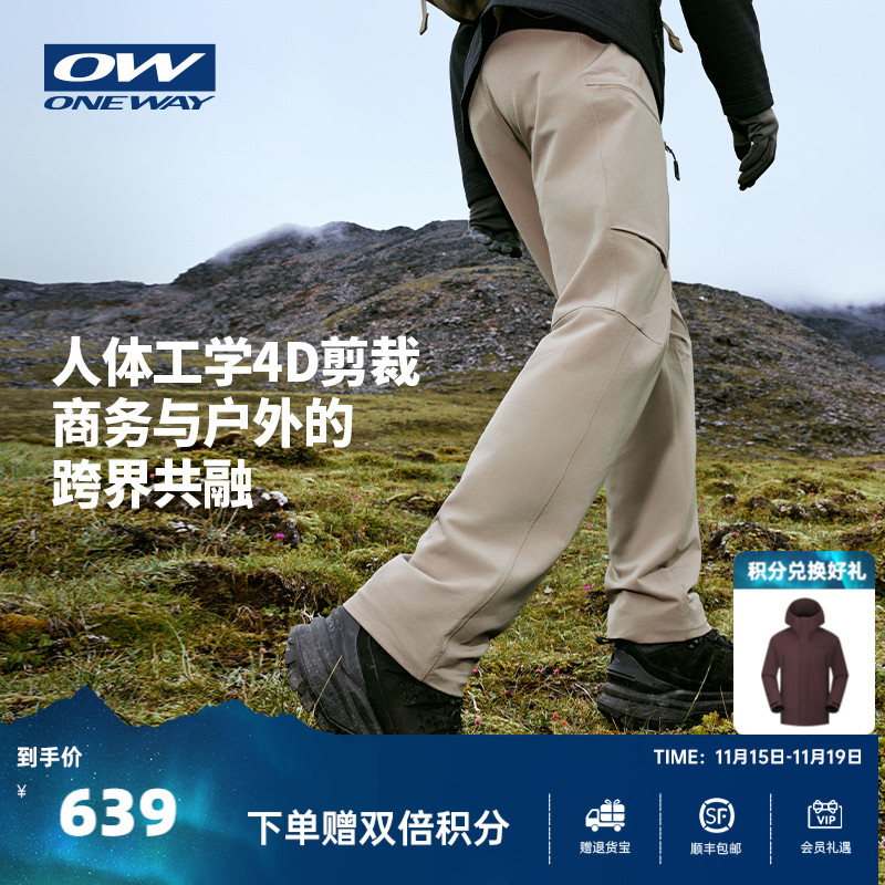ONEWAY sweatpants men's autumn and winter outdoor wear-resistant drawstring buckle softshell pants 3708