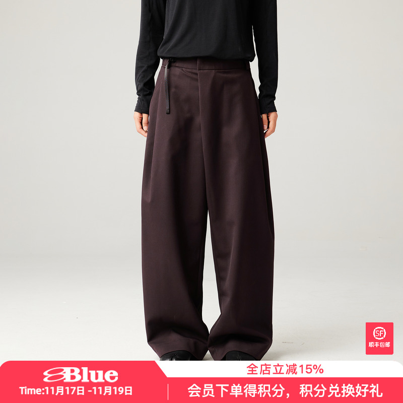 Blue Monte early fall outdoor casual loose scimitar pants drape solid color wool suit trousers for women