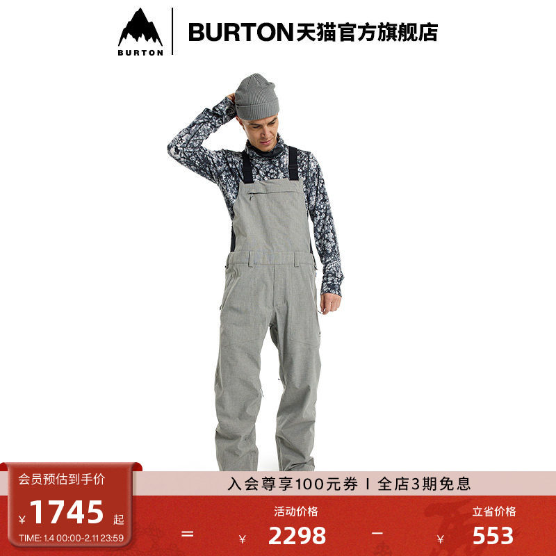 BURTON Official Men's SNOWDIAL 2L Bib Pants Water-repellent Comfortable Ski Snowboard 233671