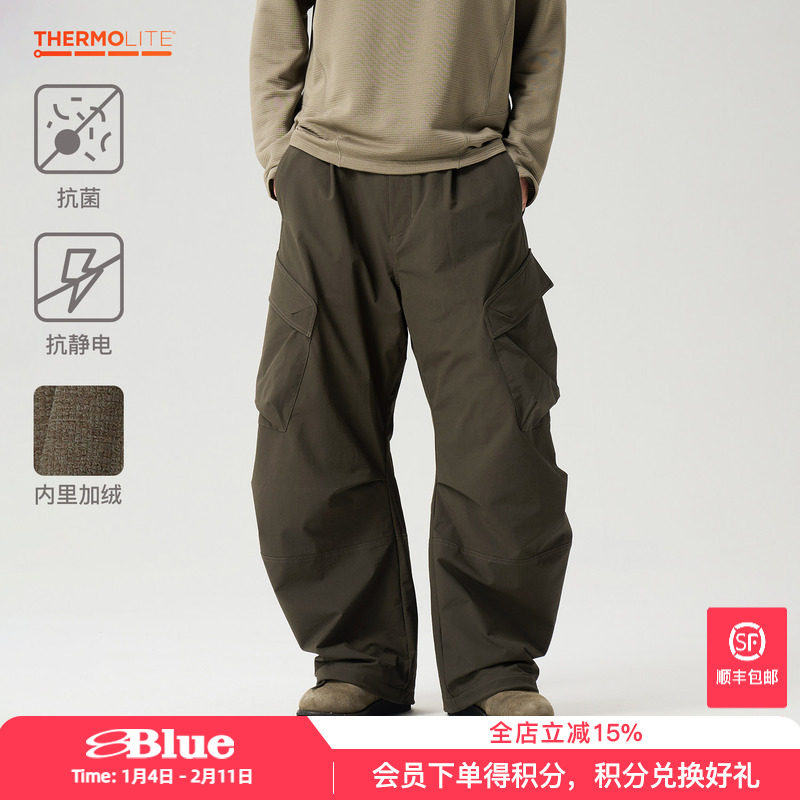 Lanqi casual trend antistatic adjustable antibacterial cargo trousers checkered fleece warm wide-leg scimitar pants for men