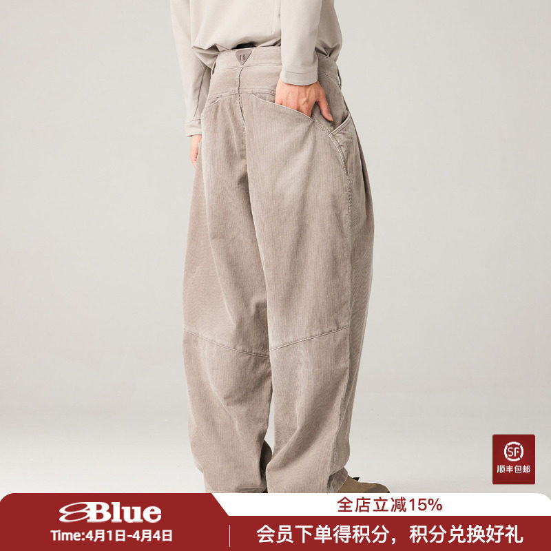 Lanqi retro trend washed old corduroy trousers autumn and winter new irregular bag opening loose tapered pants for men