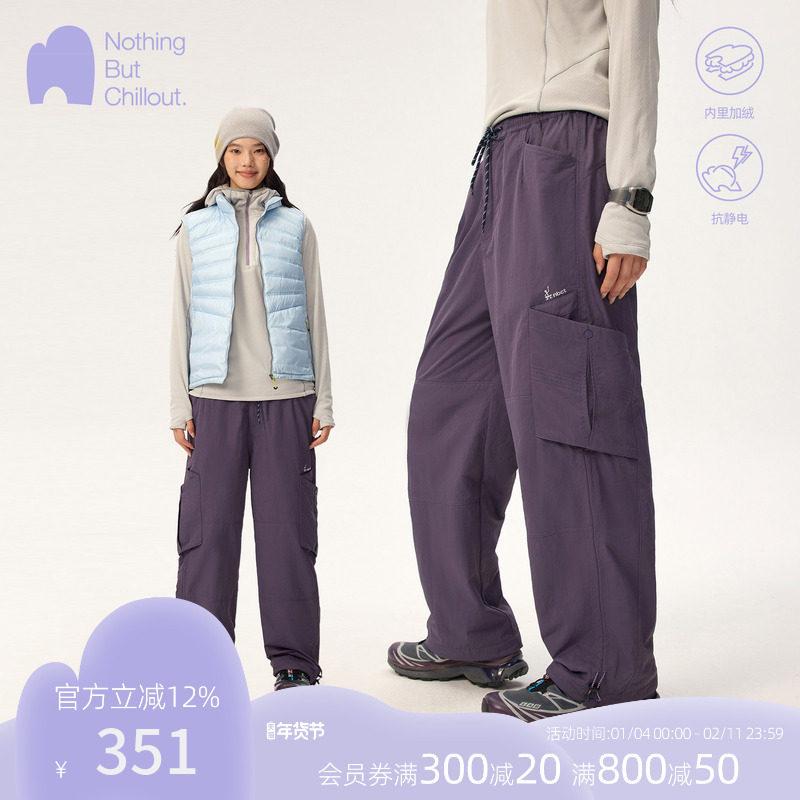 NBCT Outdoor Liner Fleece Slacks Women's Fall & Winter Anti-Static Adjustable Sports Multi-Pocket Plush Pants