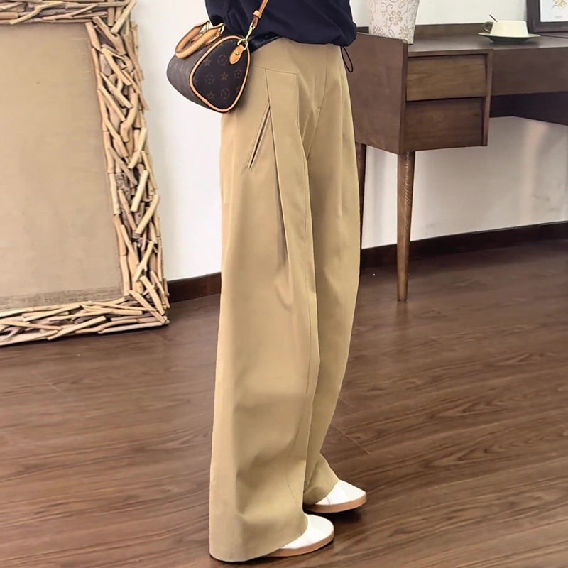 Khaki wide-leg pants women's spring and autumn 2026 new old money style small organ pants loose straight leg pants suit pants