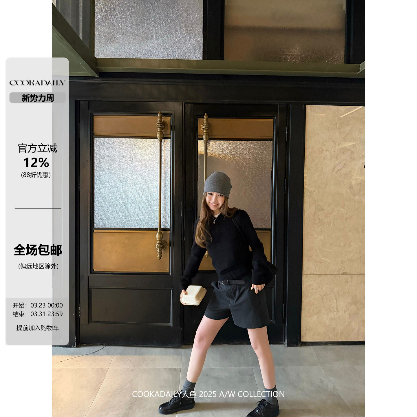 cookadaily mermaid temperament wool blend wide-leg suit casual simple trousers straight-leg pants shorts set