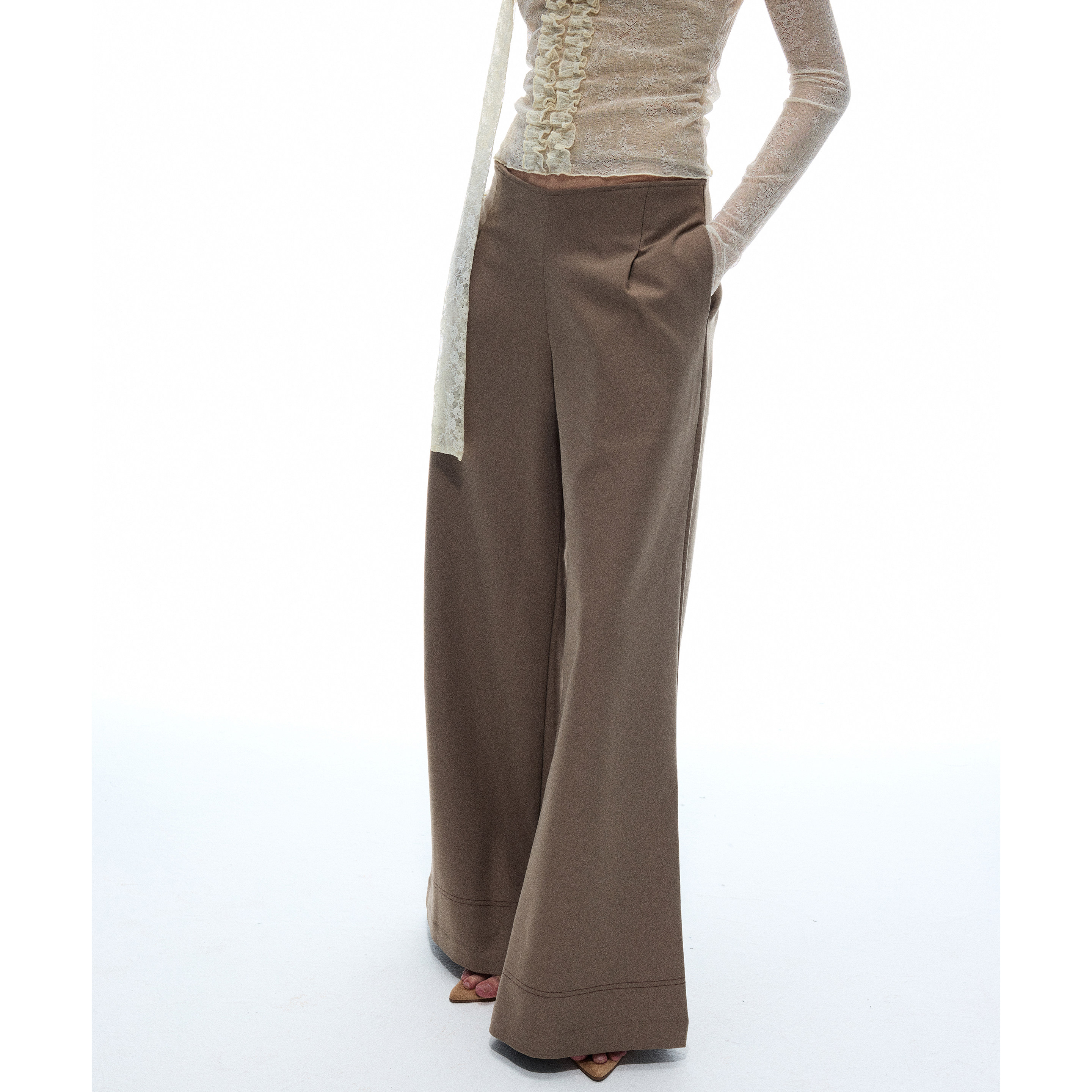 No3kou lazy yuppie old money style low-waisted floor-mopping commuter V-shaped waist drape suit pants, loose wide-leg trousers