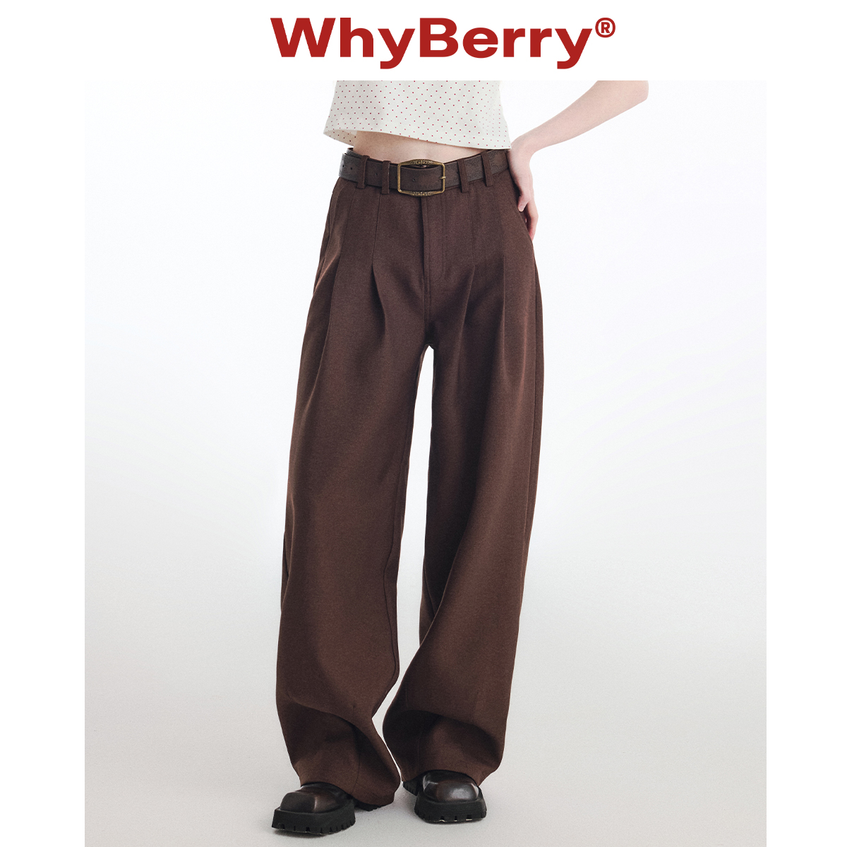 WhyBerry 24AW "Hot Cocoa" Brown Loose Casual Wide-Leg Pants Vintage British Pants Fall Winter
