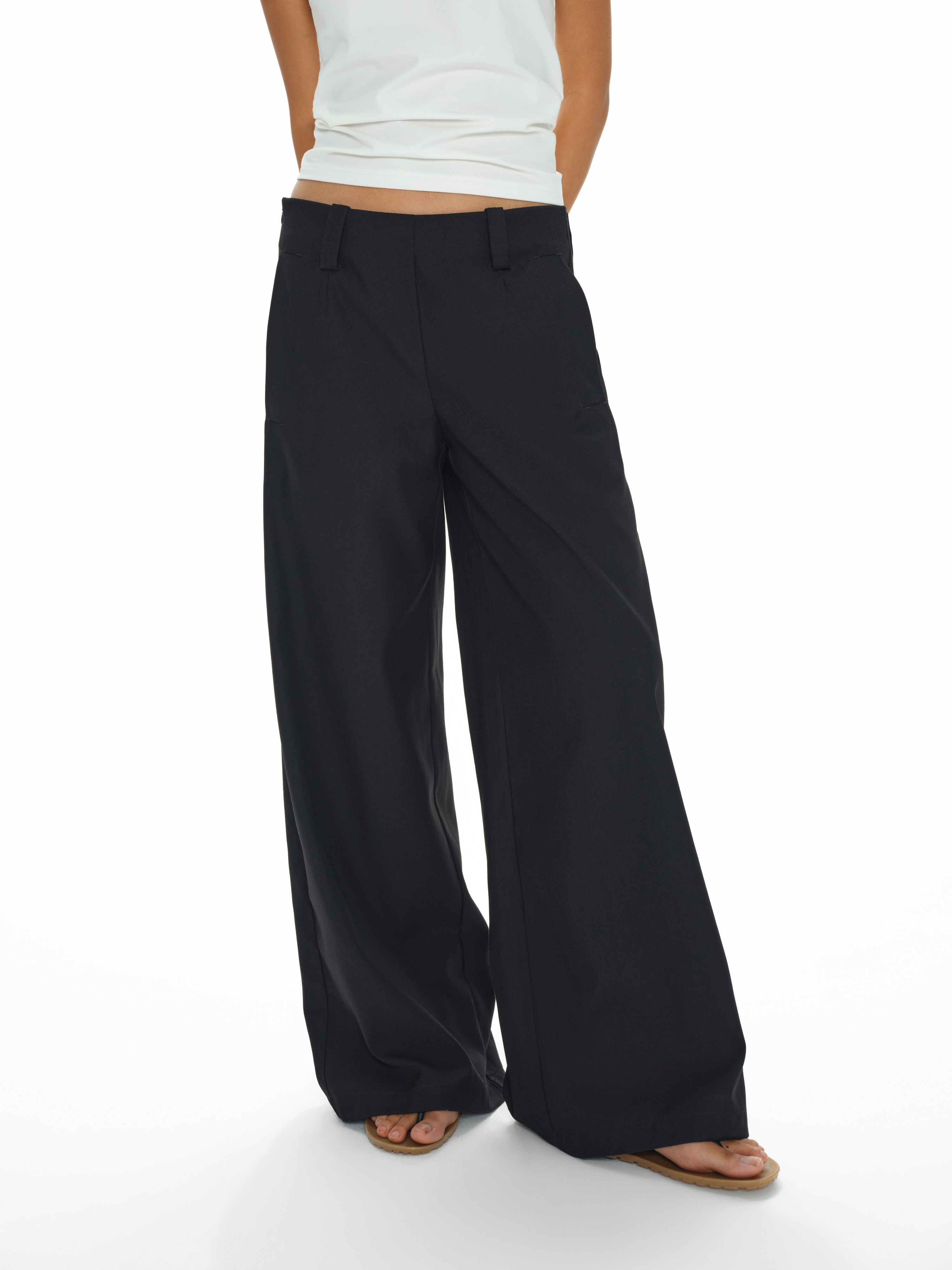 Oinimi wide-legged low-rise long trousers Black dark gray good fit crisp slim casual trousers