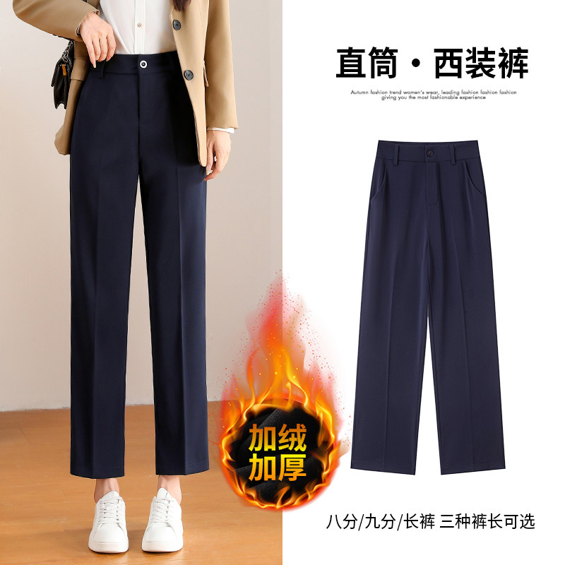 Navy blue fleece straight-leg suit pants women's 2025 winter new high-waisted loose drape thickened casual pipe pants