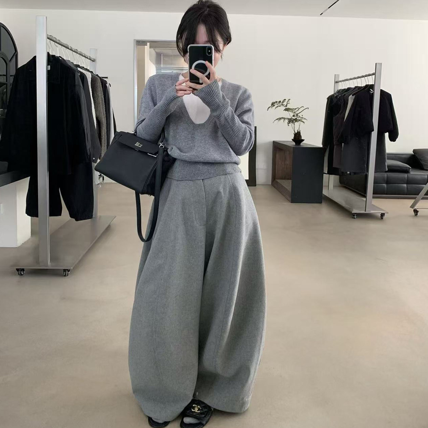 ROW Niche minimalist style wide-leg pants women's autumn and winter worsted wool high-waisted slimming waist micro-arc banana god pants