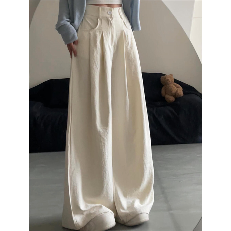 White wide-leg pants women's summer thin 2025 new high-waisted drape loose straight-leg pants lazy loose suit pants