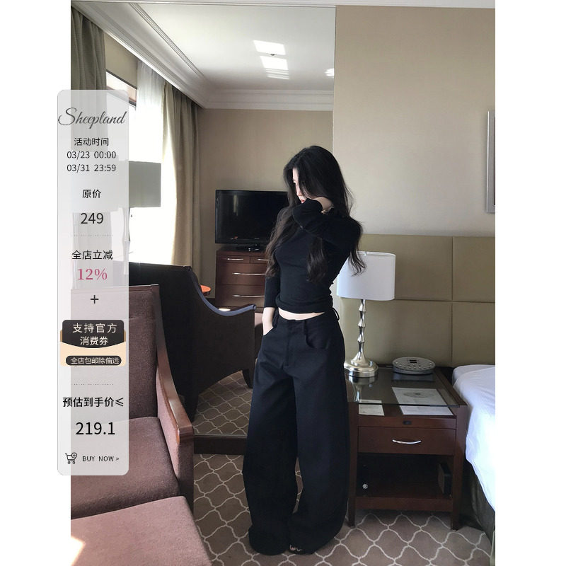 Sheepland old money style black high-drape suit pants women's spring loose slim wide-leg casual pants