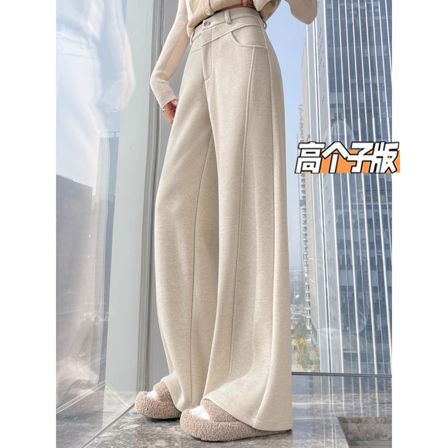 Coffee-colored cashmere wide-leg pants for women autumn and winter 2025 new fleece thickened three-point casual wool tweed nine-point straight-leg pants