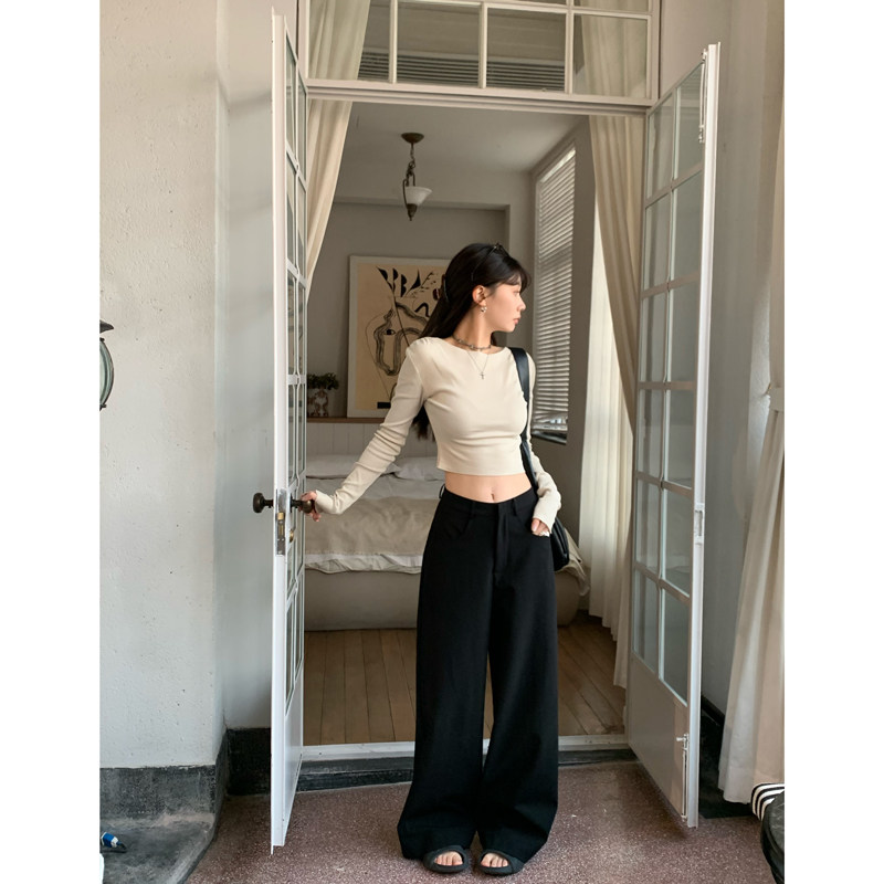 ThreeH Niu Niu Black Casual Straight Suit Pants Women's Wide Leg Loose High-End Drape Slim Long Trousers