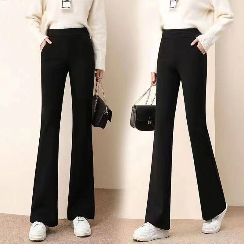 Langzi retro commuter high-elastic bell-bottoms, suits, winter new fleece pants, women's high-waisted slacks, thickened