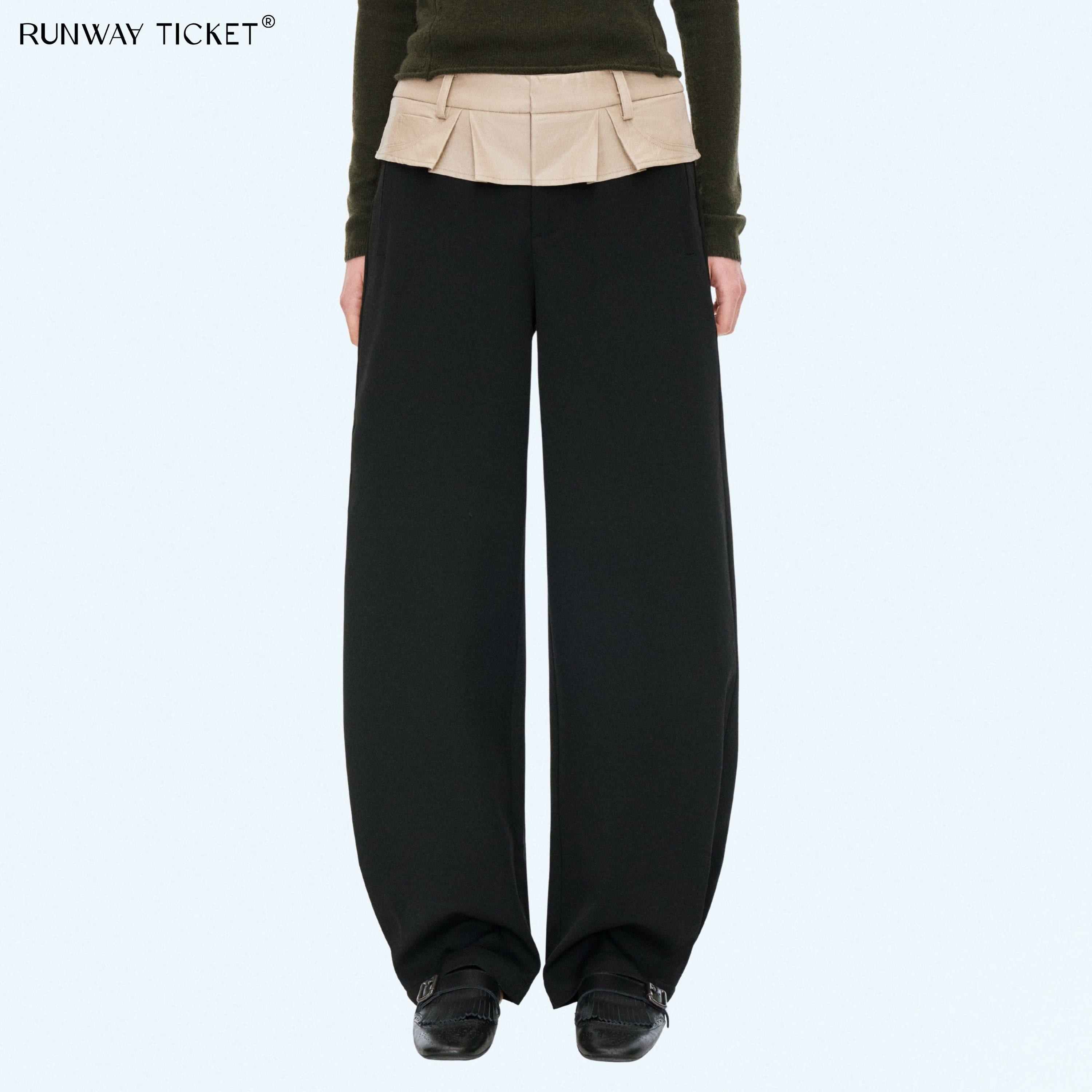 Global Flower [Berlin Black Qiao] plus size black high-end drape suit pants versatile high-waisted loose straight trousers