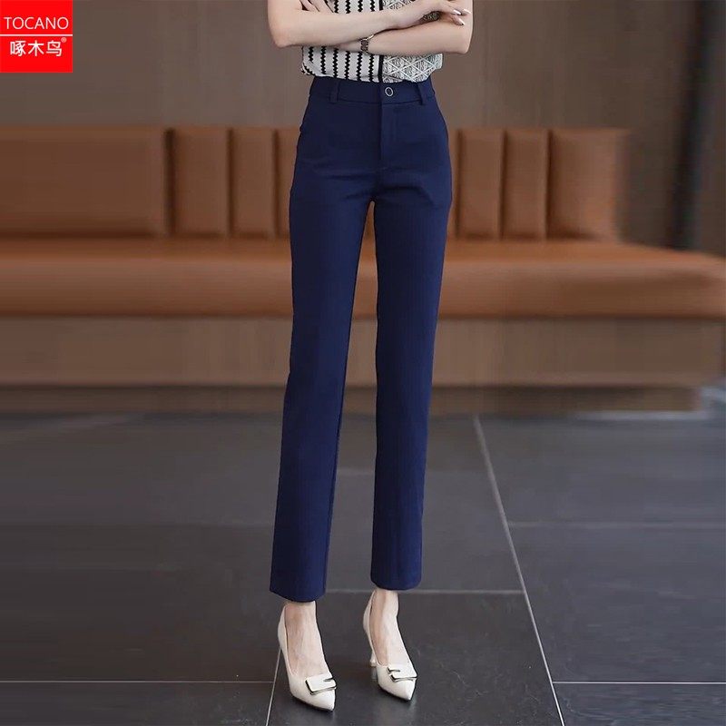 Woodpecker spring and summer new blue suit pants women's versatile high-waisted slimming professional slacks small straight pipe pants