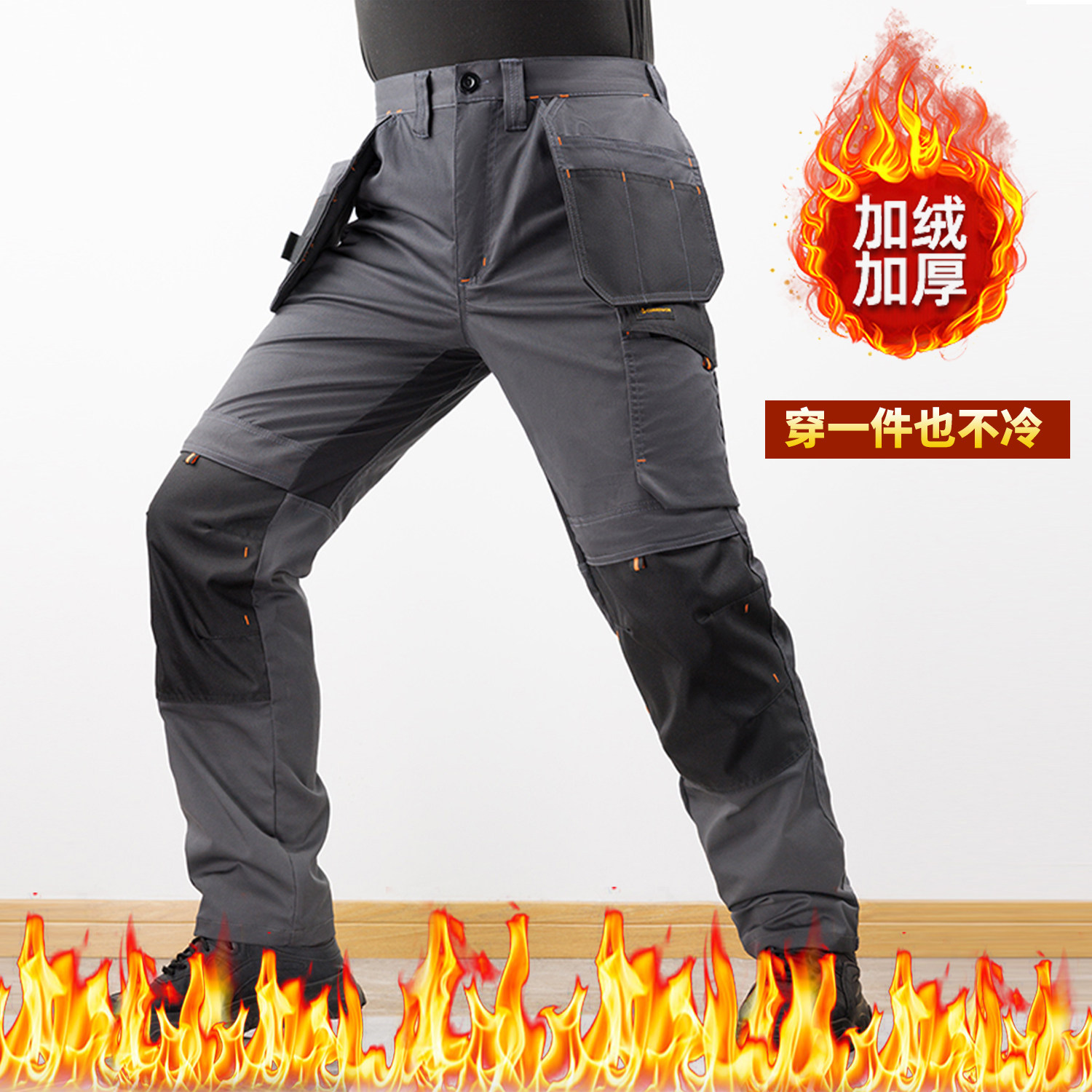Multi-pocket stretch fleece cargo pants for men autumn and winter casual outdoor loose plus size elastic waist work pants are wear-resistant