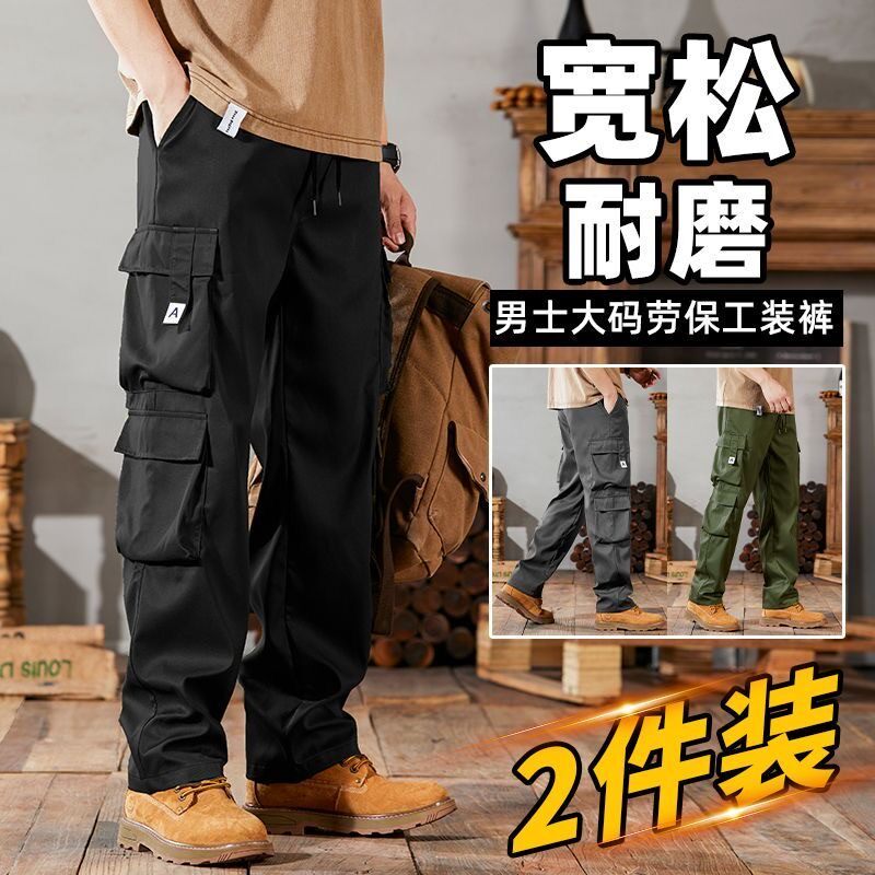 American retro cargo pants men's spring and autumn straight 2025 new outdoor paratrooper pants plush men's casual trousers
