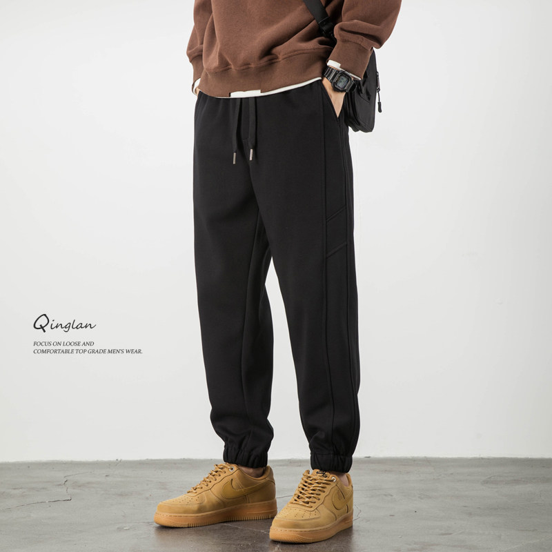 Qinglan autumn and winter new black slacks, men's loose leggings, sports sweatpants, plus-size fleece and thickened pants