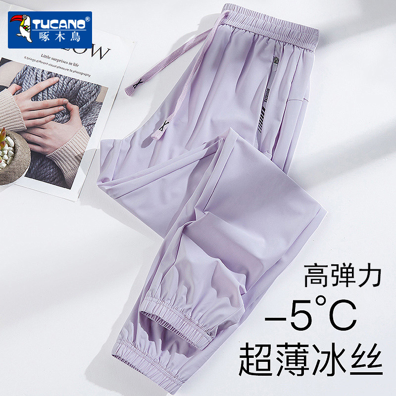 Woodpecker summer thin ice silk pants women's summer quick-drying loose leggings cropped sunscreen sports slacks