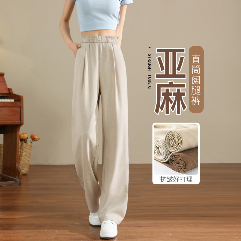 Tencel linen pants, women's apricot color, high-end anti-wrinkle drape, small narrow version Yamamoto pants, straight ice silk wide-leg pants