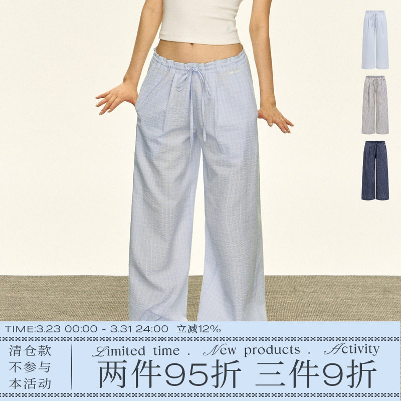 Ariseism American Vintage Thin Blue Plaid Slacks Women's Summer New Low-Rise Loose Wide-Leg Pants