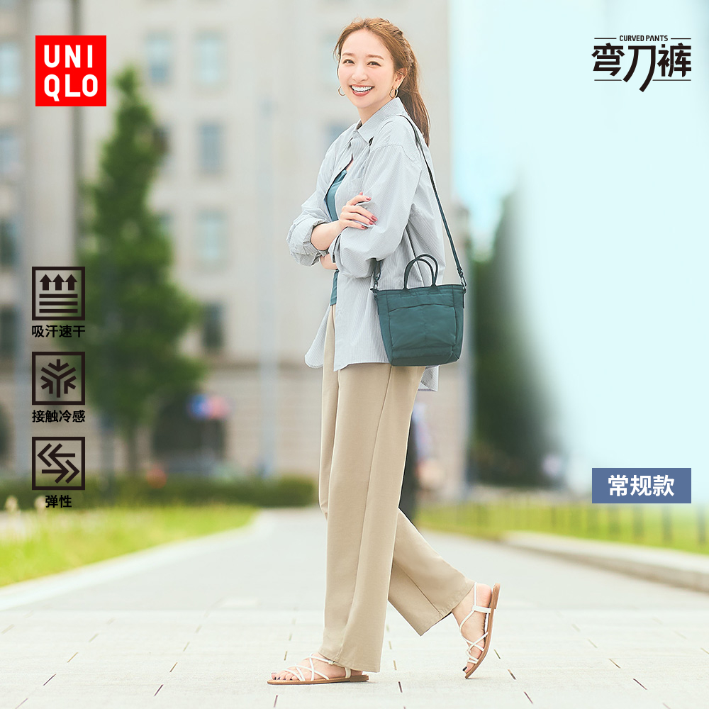 Uniqlo women's knitted silhouette trousers, quick-drying, quick-drying, sweat-wicking, high-waisted scimitar, sickle pants 479688