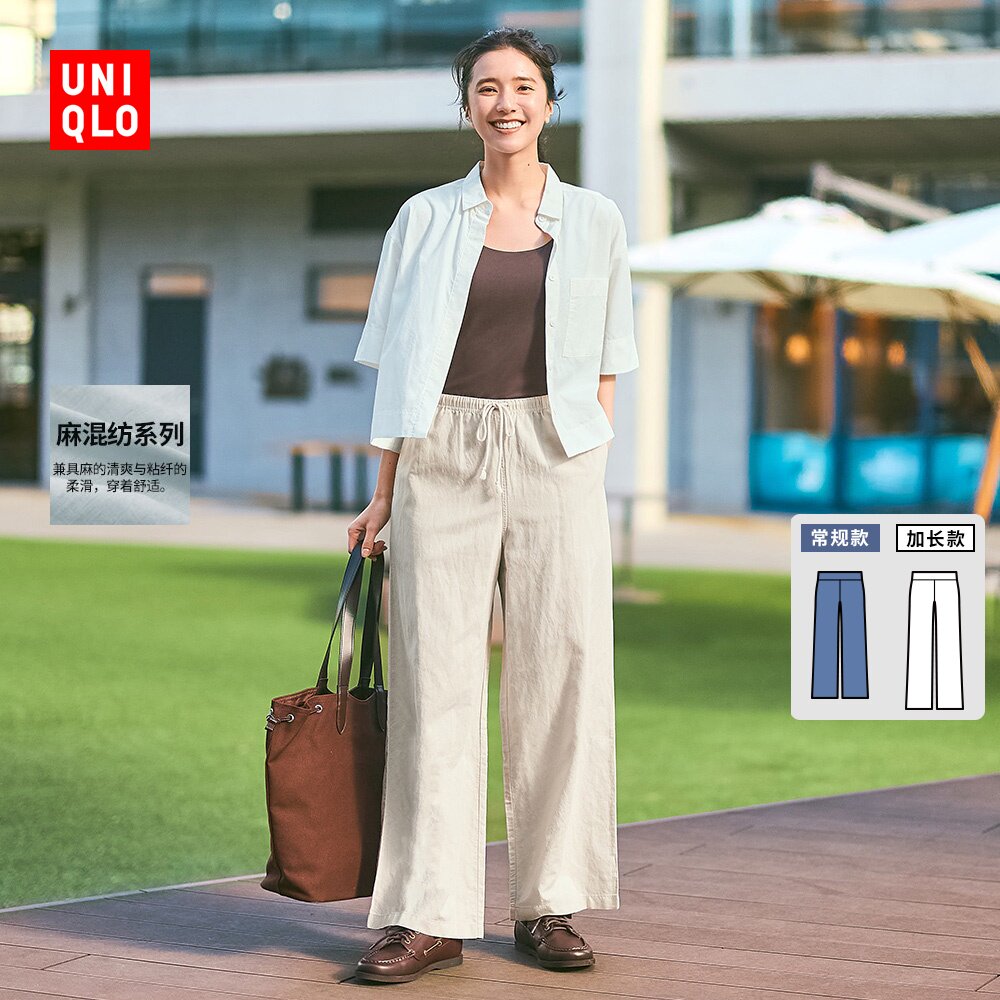 Regular Uniqlo Women's Linen Blend Comfortable Pants/Slacks 26 Spring/Summer New 482246