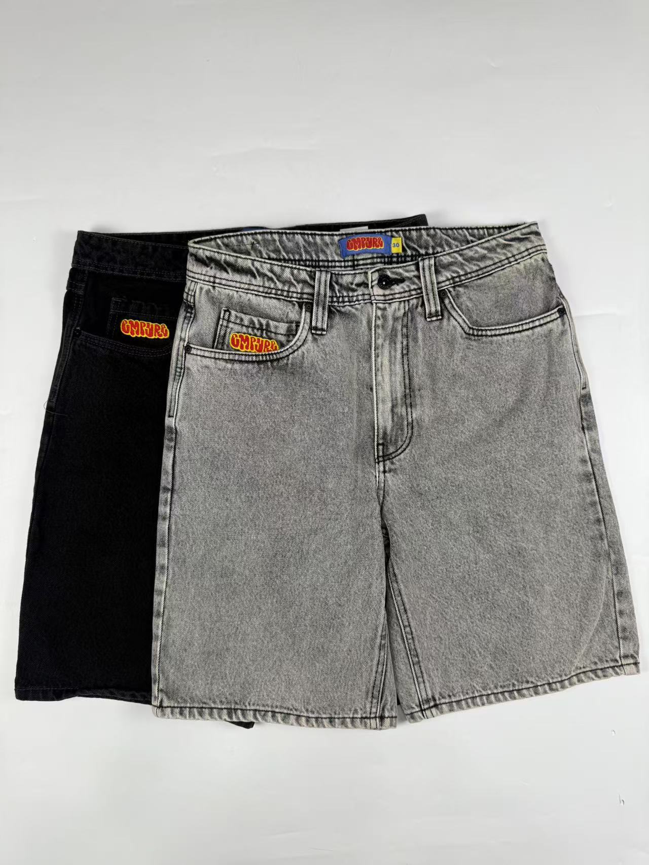 American vintage wide-leg baggy scimitar shorts jeans men's and women's summer summer street loose casual cropped shorts
