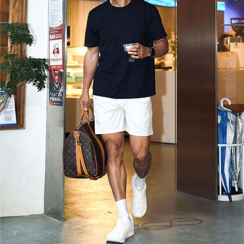 Pull-back shorts, heavy cotton men's cropped pants, American casual loose straight mids, men's M