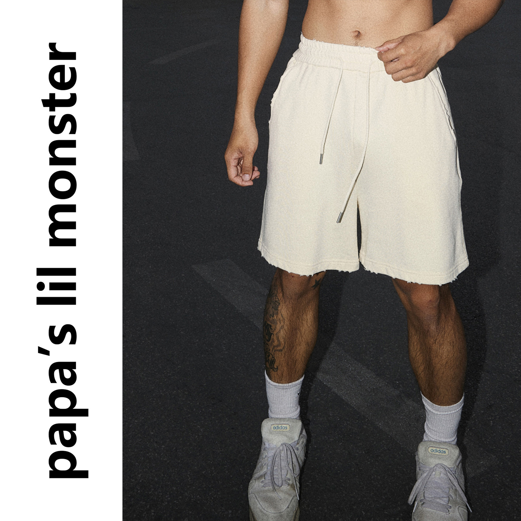 PAPASLILMONSTER American edging distressed sports loose cropped pants fitness versatile casual shorts for men