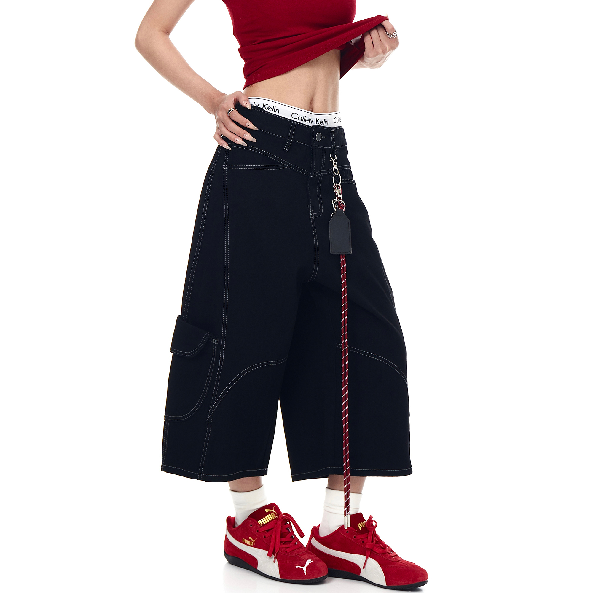 BLACKLISTS American Vintage Deconstructed Topline Multi-Pocket Cargo Shorts Men's and Women's Design Denim Cropped Pants