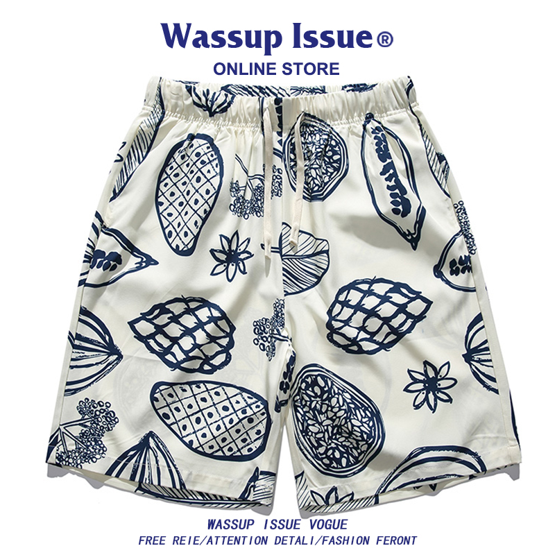 WASSUP ISSUE Hawaiian style beach casual shorts men's summer trendy brand loose thin sports cropped pants