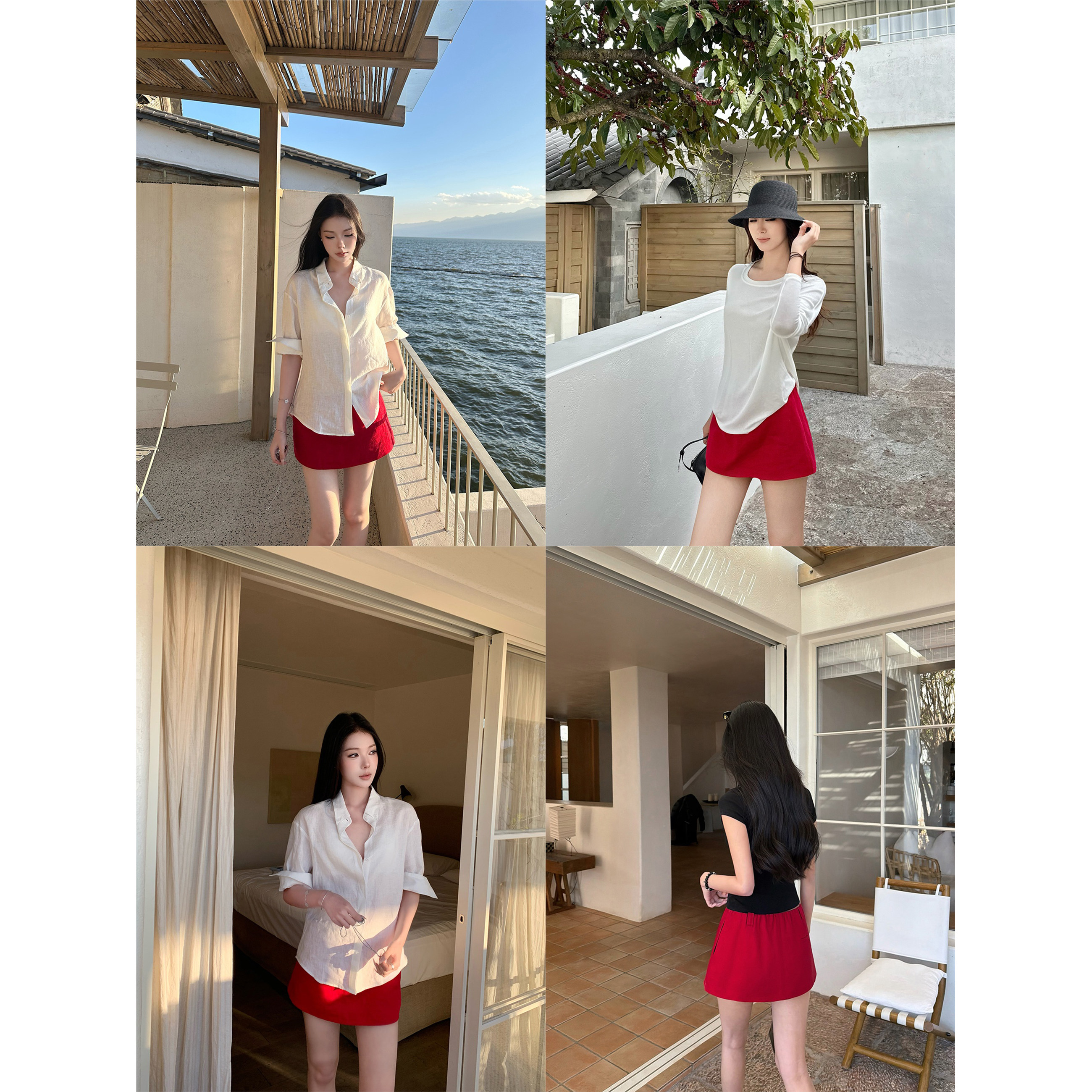 5werkwen Southern France Vacation|Proportional Tiancai 1OO linen anti-exposure trousers and skirts short A-line skirts