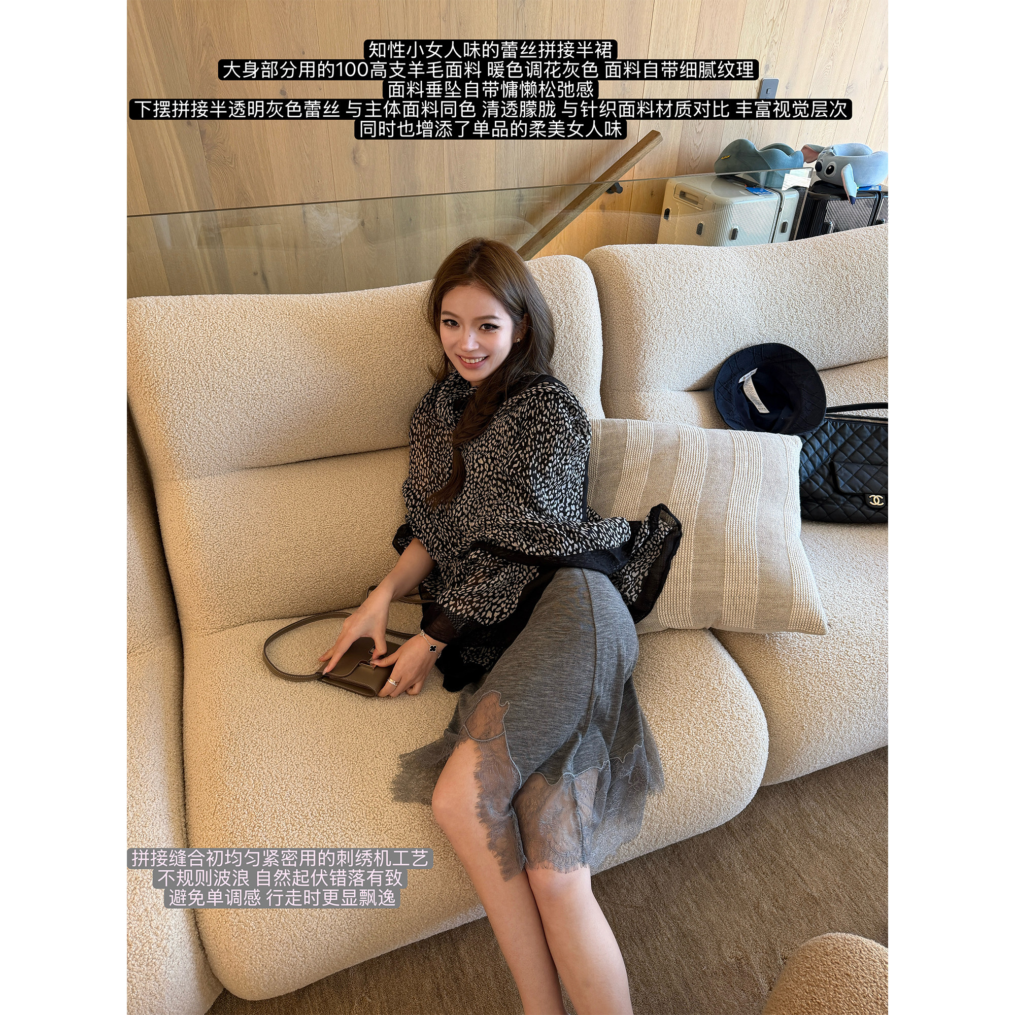 EEWEN LA MODE is soft and graceful, wool lace patchwork skirt, and layered items