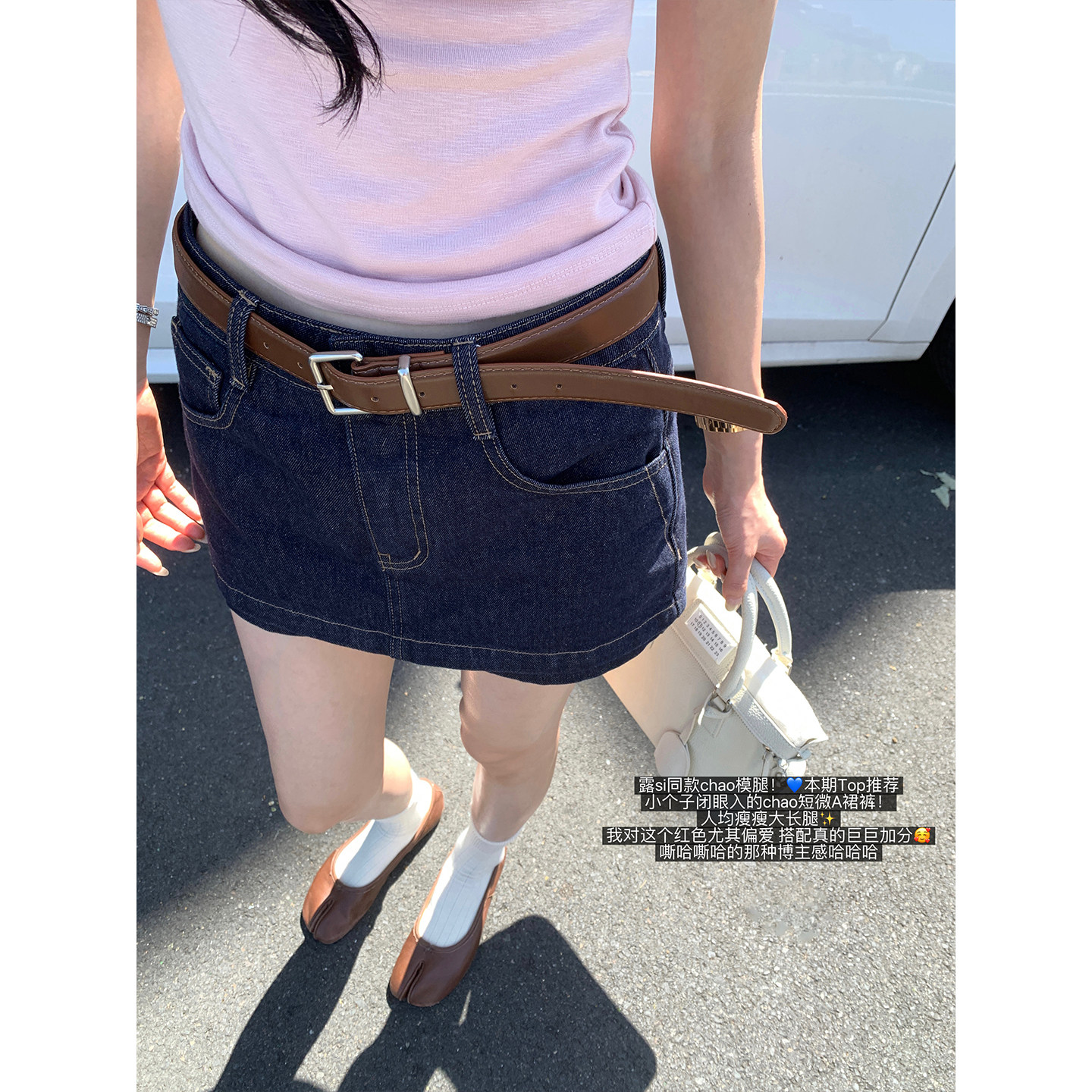 Just Ouyang 'Lu Si the same style' hot girl Bai with W! Sino Fabric 100 cotton denim shorts belt A-line culottes
