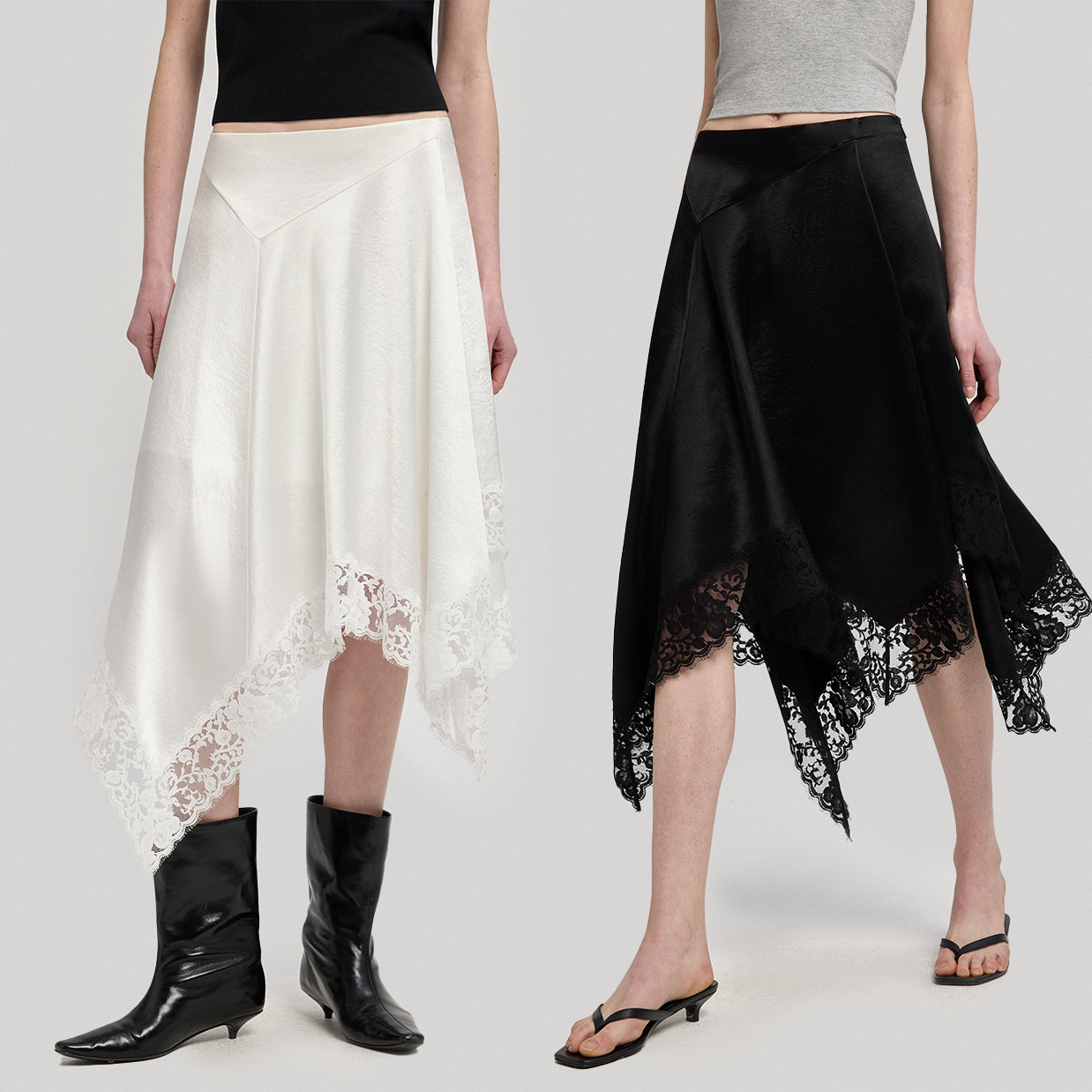 Studio/Original American Eastman Satin Wrinkle 1oo% Acetic Acid Smart Irregular Stitching Lace Skirt