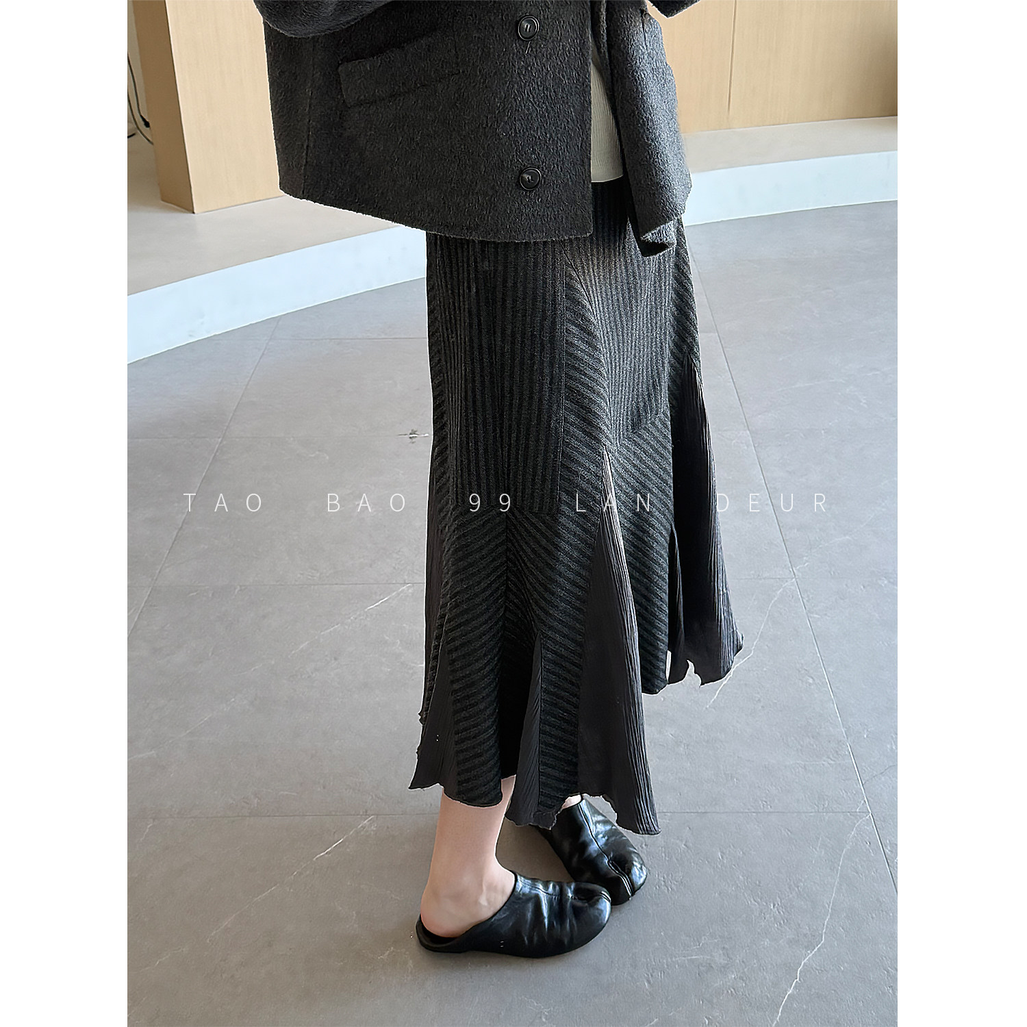 LAN DEUR [Twilight Gentle] 40 wool high gram weight double line encrypted three-dimensional irregular fishtail wool skirt